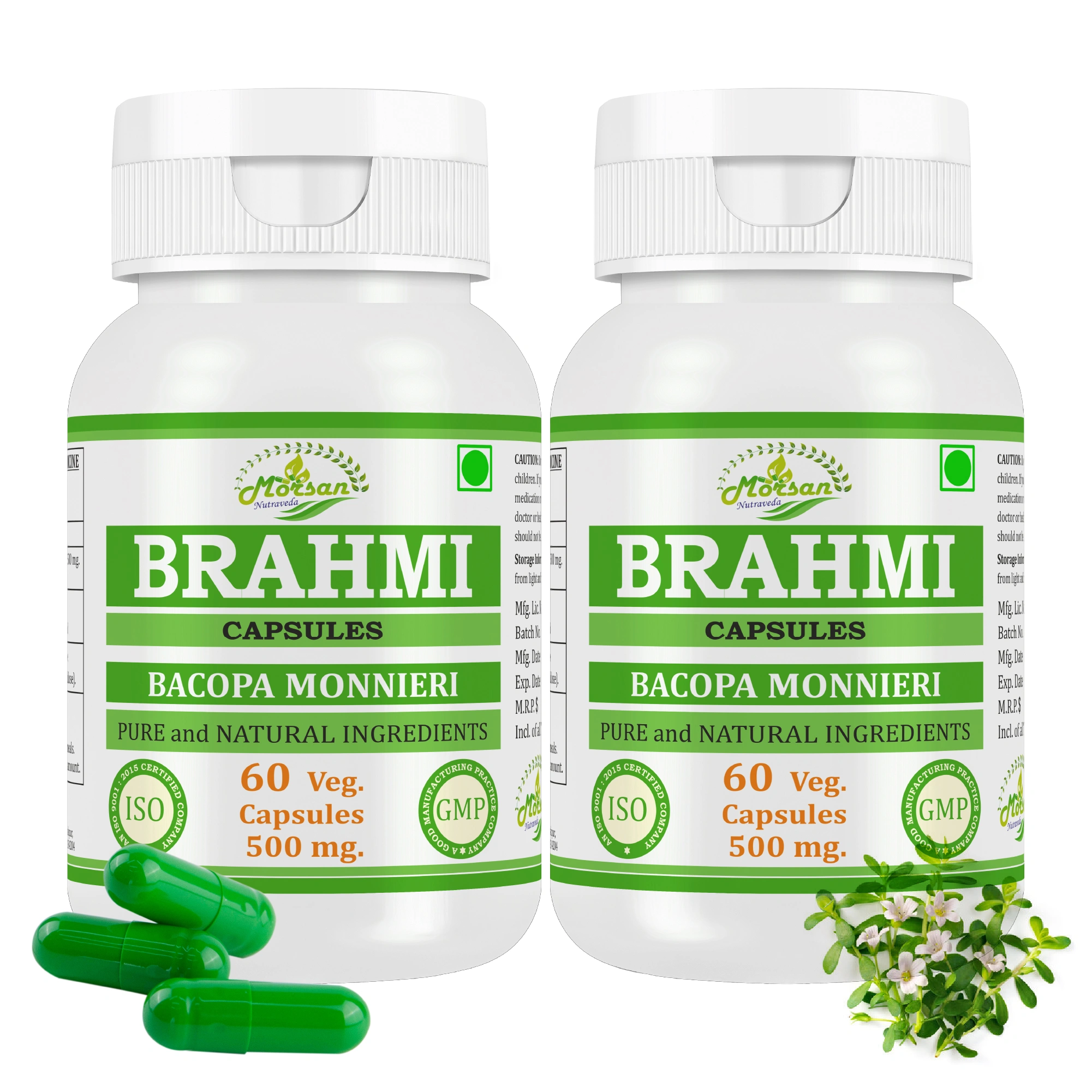 - Brahmi (Bacopa monnieri) Extract – 500 mg per capsule