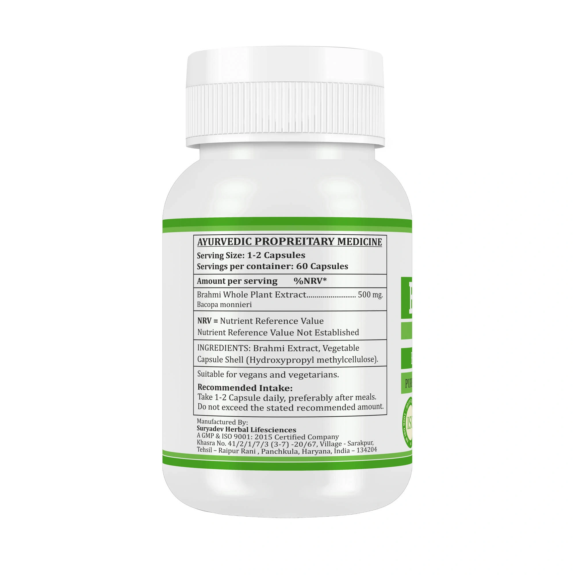 Made from natural Brahmi herb - Capsule Shell: HPMC (Plant-based, Vegetarian)
