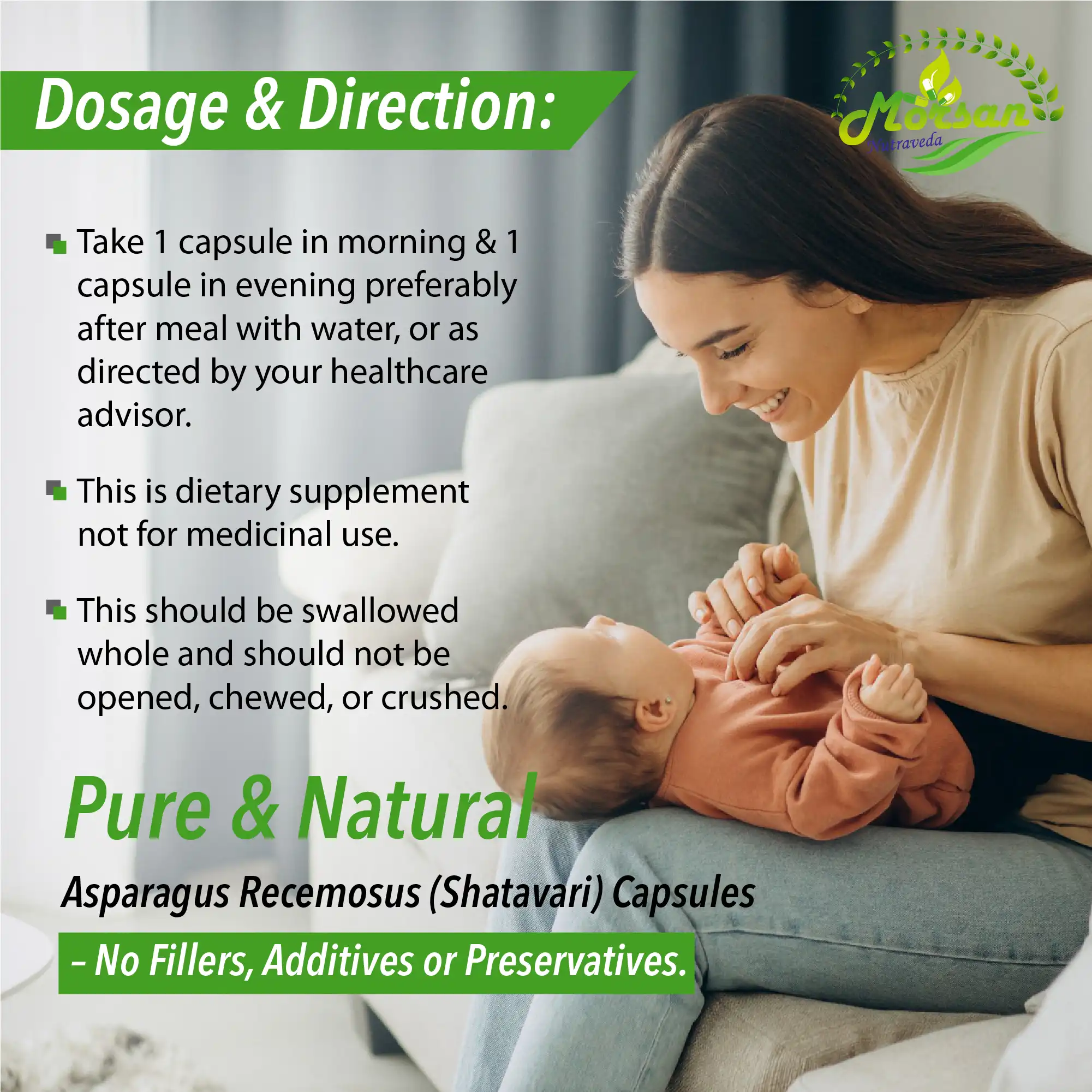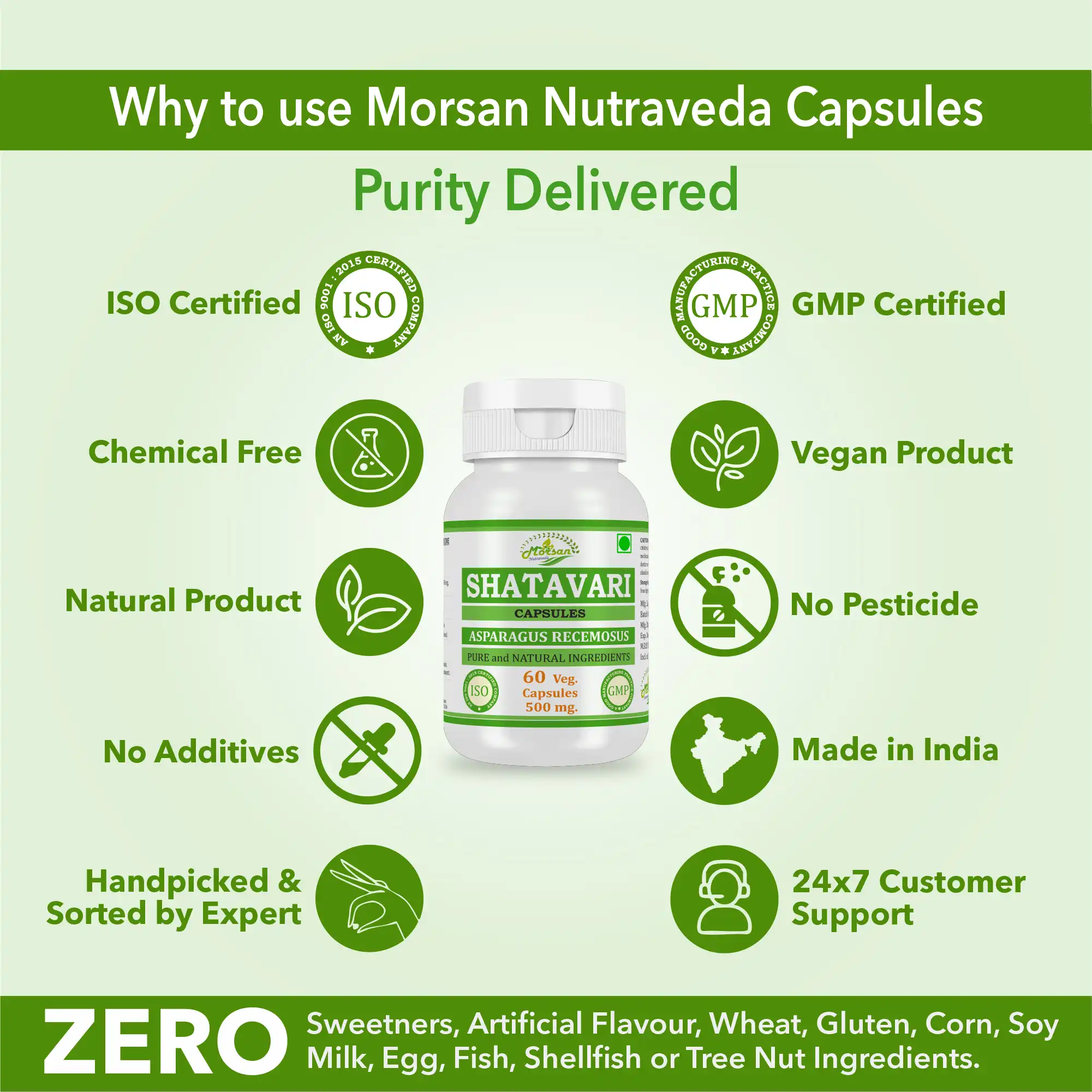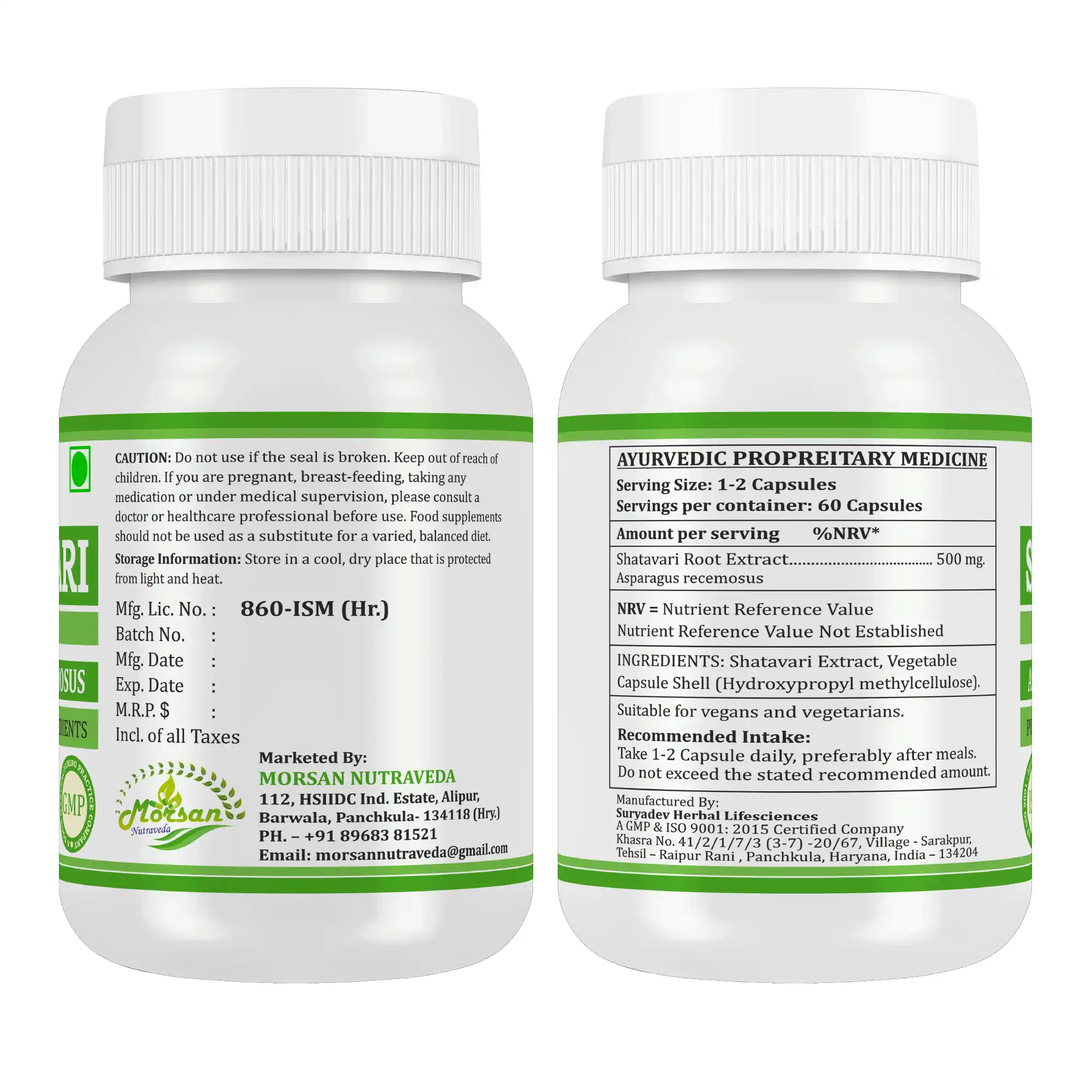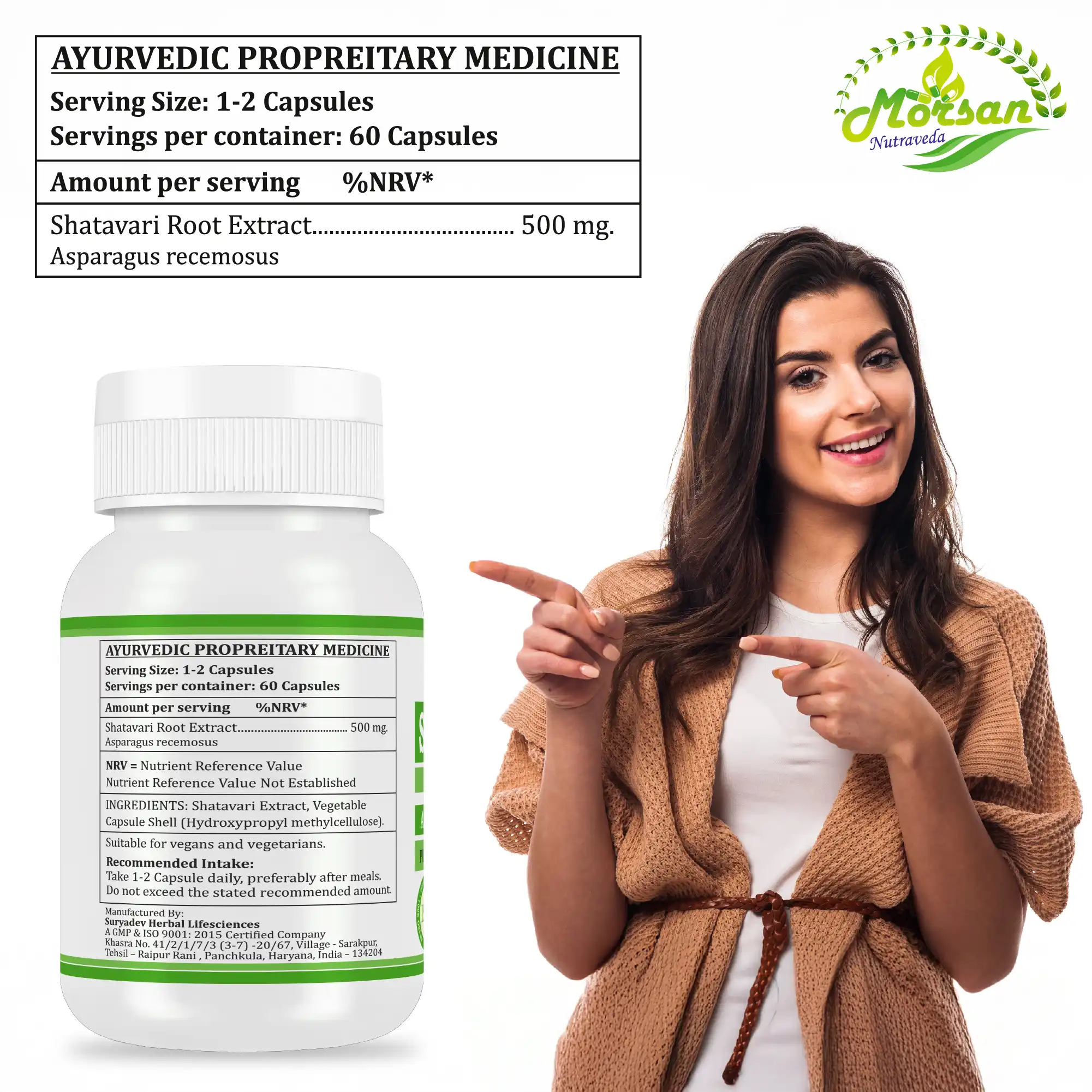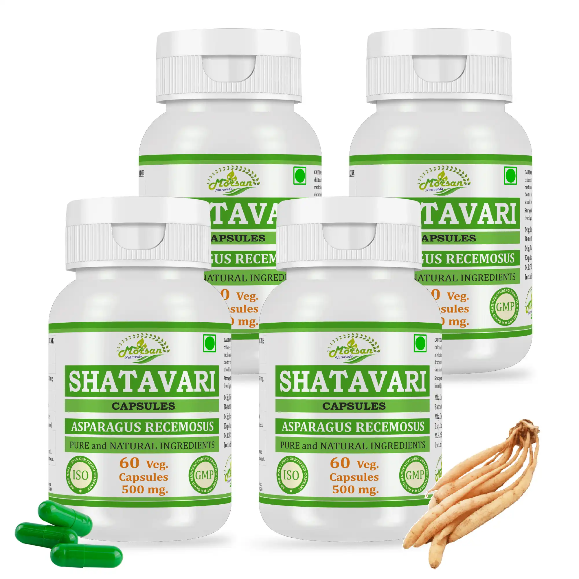 - Shatavari (Asparagus racemosus) Root Extract – 500 mg per capsule